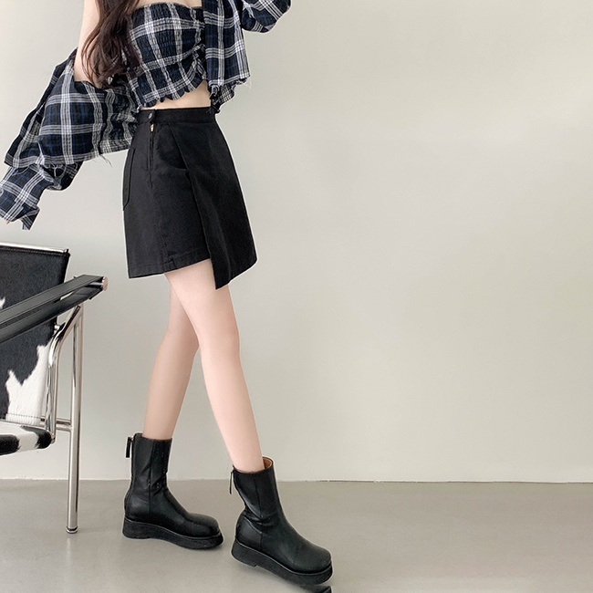 [치마바지/하비체형커버] 데일리블랙 A라인 언발랩 3부 하이웨스트 하프 숏팬츠(S,M,L)