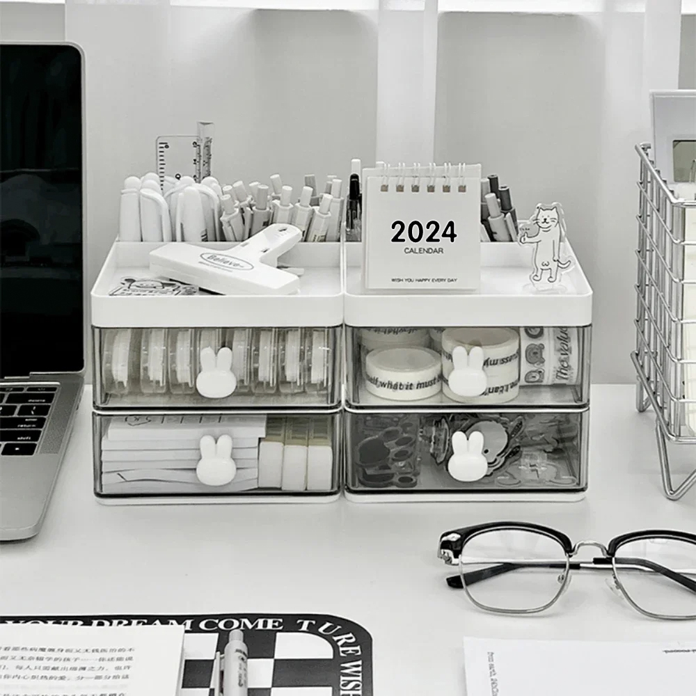 미니서랍 2단 토끼 손잡이 서랍장 책상정리 데스크수납함