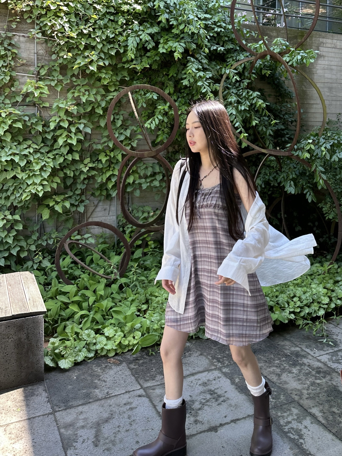 check mini ops /파스텔 체크 미니 나시원피스