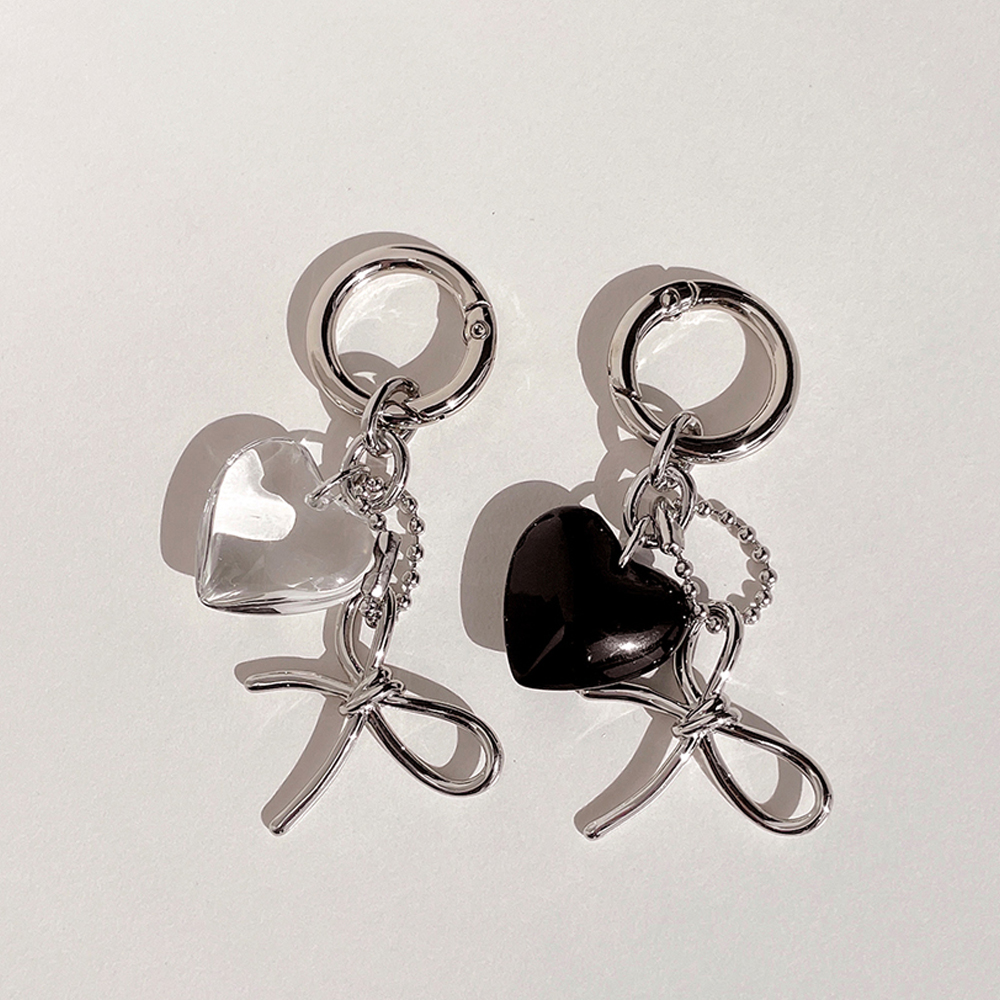 [커플구매할인] 블랙 하트🤍🖤 리본 가방고리 실버 키링 커플 투명 키홀더