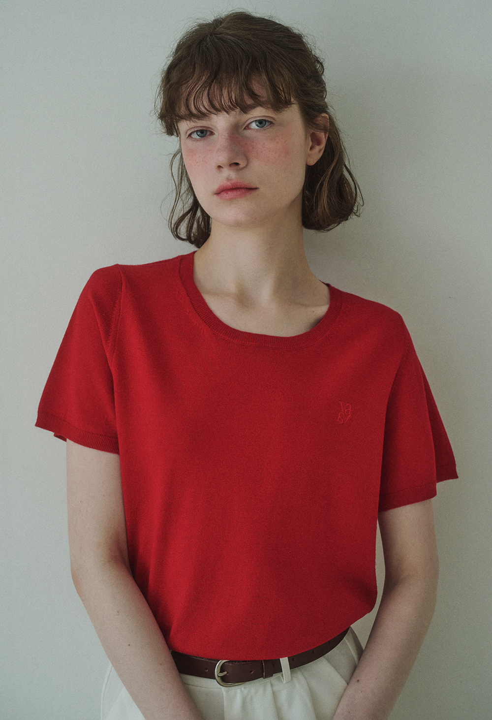 [누적판매 1만장][BEST]선샤인 반팔 라운드 자수 니트