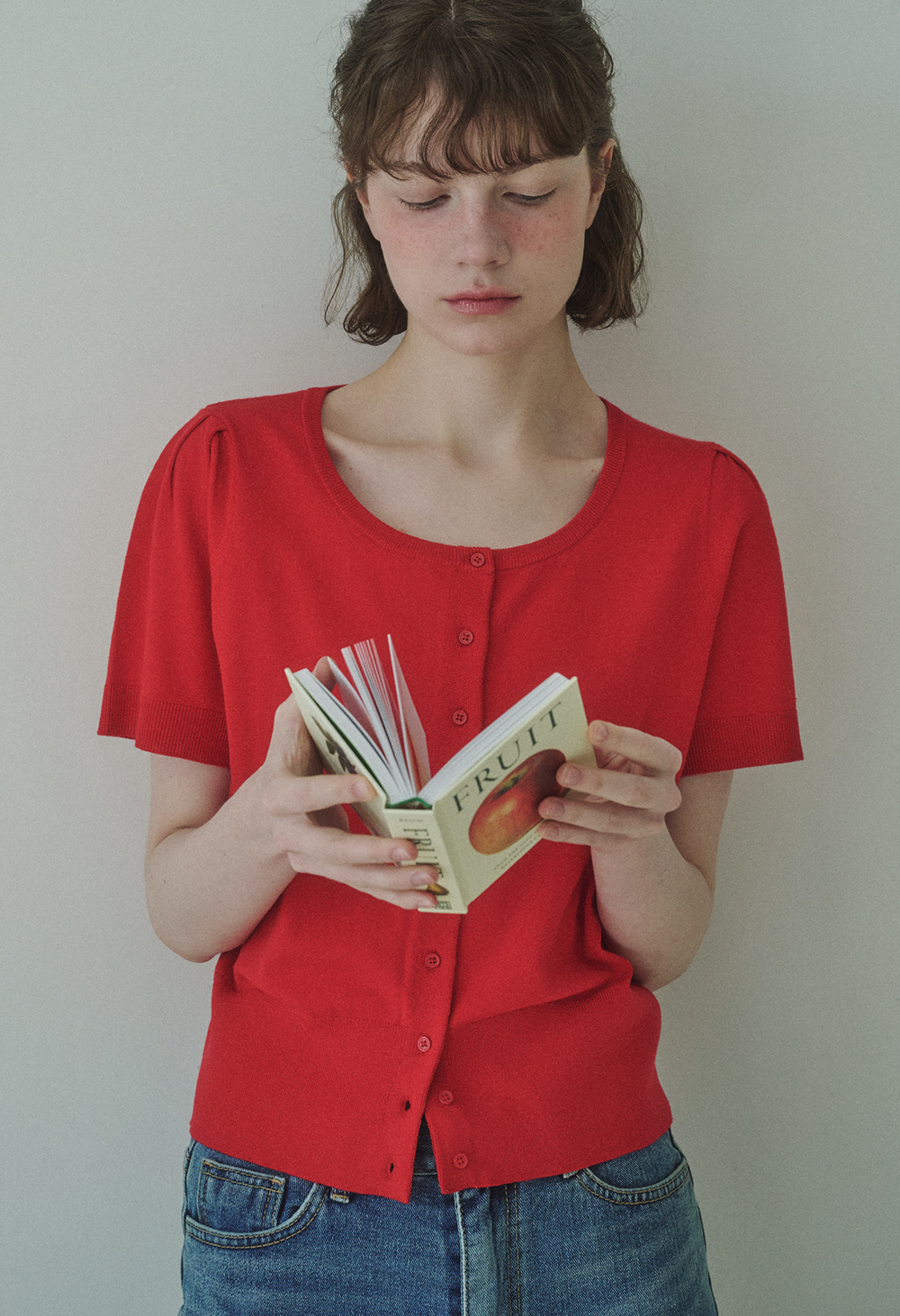 [BEST] 줄라이 퍼프 소매 반팔 유넥 가디건