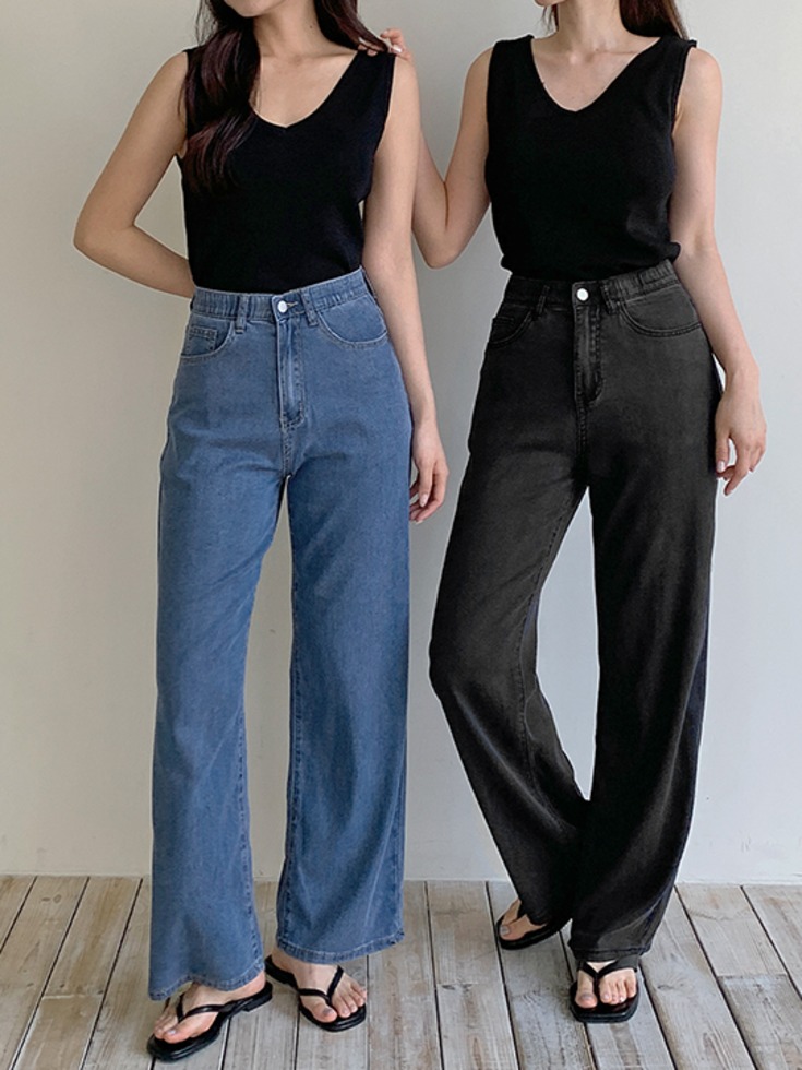 [5천장 돌파✨][무료배송][숏/기본/롱][-5˚C쿨링감] 데니브 쿨링 스판 히든밴딩 세미 와이드핏 데님 팬츠 청바지 ( 여름-데일리룩-데이트룩-캐주얼룩-캠퍼스룩-하객룩-격식룩-출근룩-빅사이즈-34사이즈-자체제작-시원한-가벼운-통통녀 )