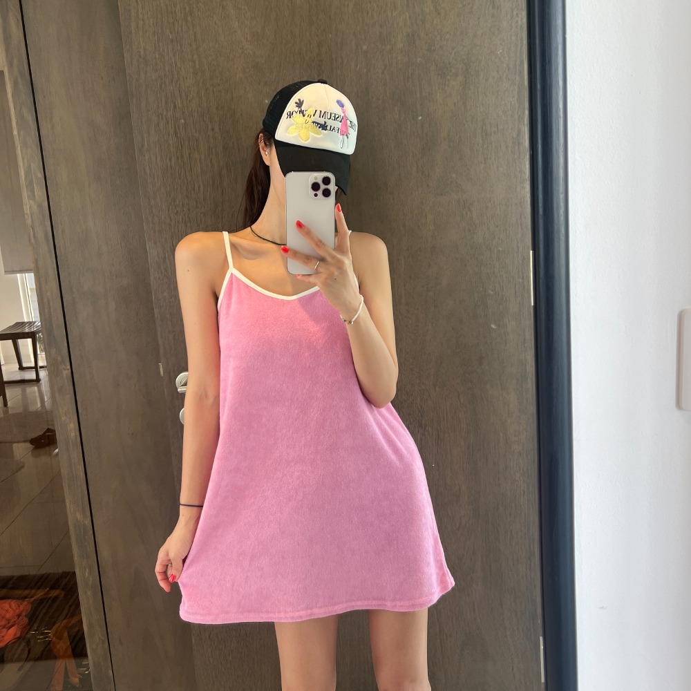 (캡 내장 당일출고) 비치 보들 배색 스퀘어넥 테리 타올 미니원피스 4color 비치웨어 커버업 흠뻑쇼