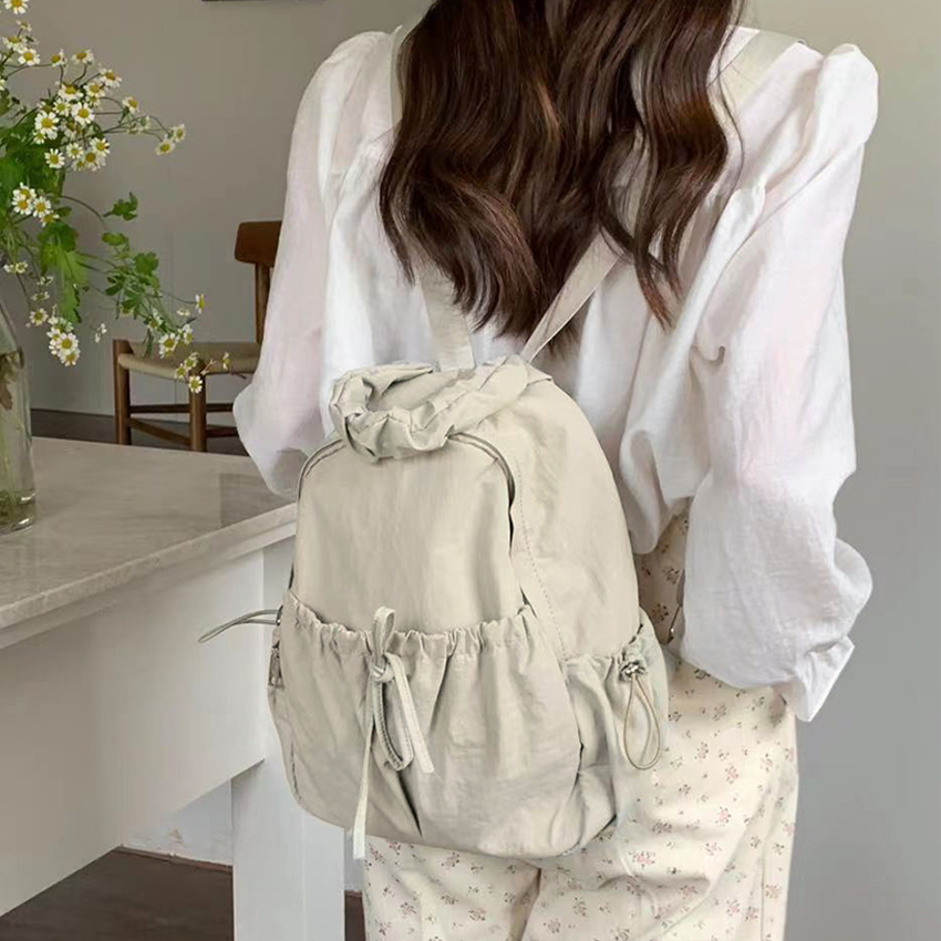 🔥주문폭주🔥 바스락 나일론 리본 스트링 가벼운 포켓 보부상 노트북 아이패드 여행 백팩 가방 트래블 가을 하객룩 개강 새학기 화이트 GB030