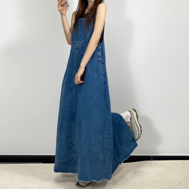 [💝맥시A핏,통멜빵원피스] 통통녀코디 빈티지 진청 멜빵데님원피스 빅사이즈 군살커버 [3380]