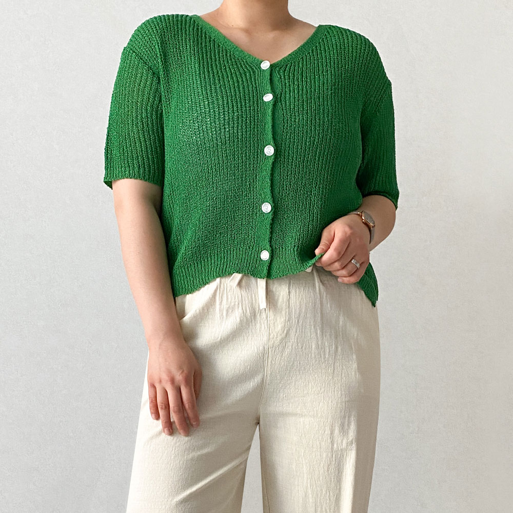 [그물니트 /데일리룩,여행룩] 초록초록한 V넥 시스루 망사 그물 니트 77사이즈 빅사이즈 여름 니트