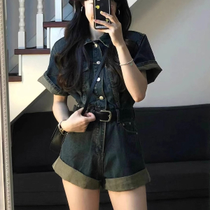 [여름신상/여름원피스/청청코디]반팔 여름자켓 데님 청자켓 점프수트 워싱 흑청 자켓원피스 하이웨스트 청 반바지 와이드팬츠 점프 슈트 (통통녀 20대 데이트룩 하객룩 결혼식 소개팅룩 여친룩)