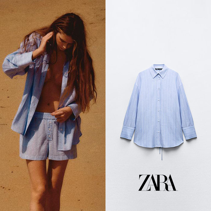 ZARA 자라 백 리본 스트라이프 셔츠 3233/233