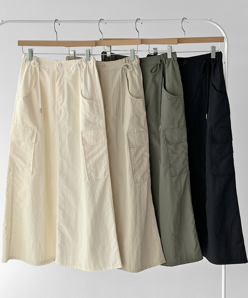 나일론 바스락 카고 A라인 여름 밴딩 롱 스커트 치마