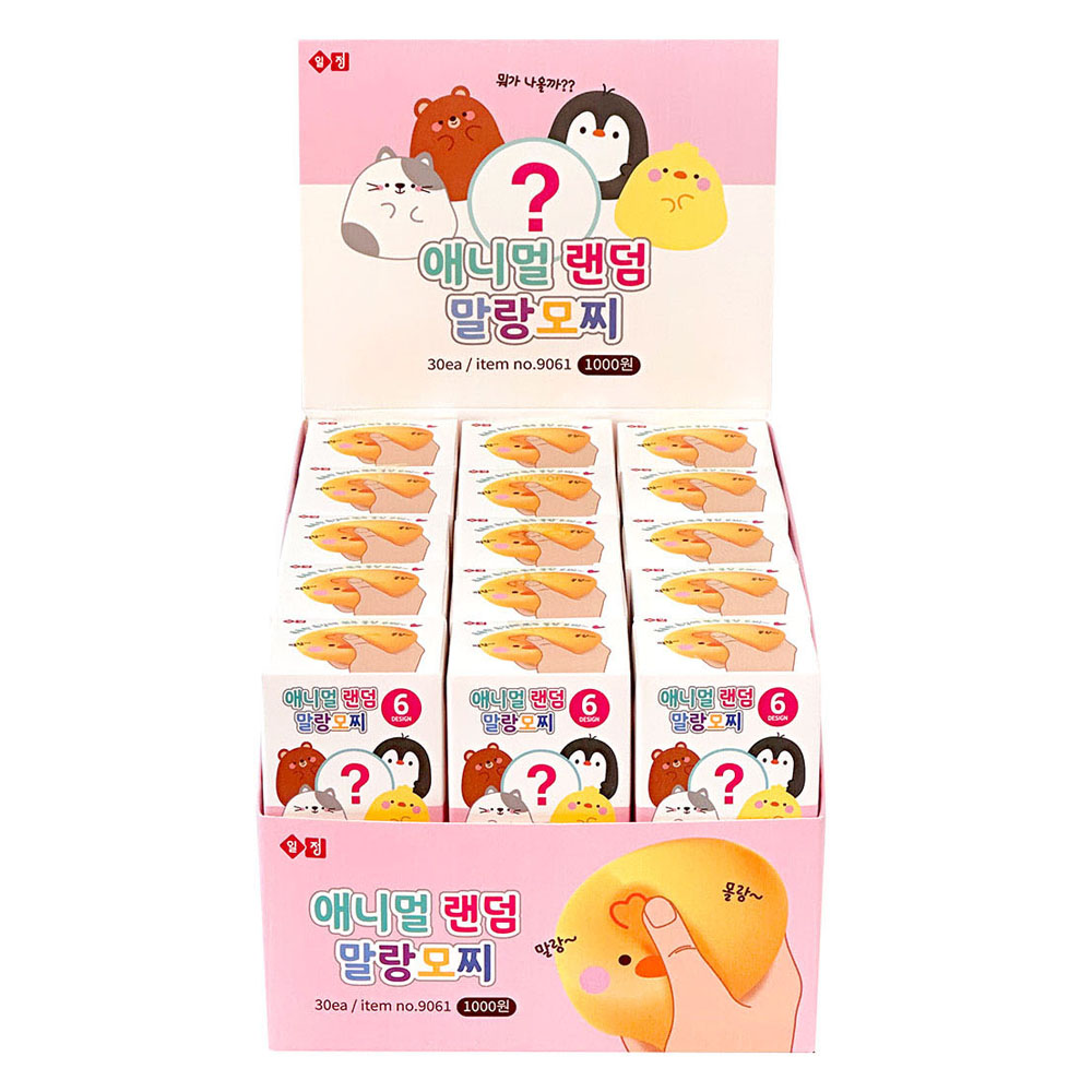 랜덤 뽑기 애니멀 말랑모찌 30개(박스) 랜덤박스 말랑이 스퀴시 주물럭 인형 소형 선물