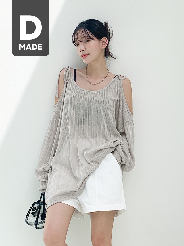 [1천장돌파][MADE] 빅사이즈 55-110 휴이 오프숄더 리본 스트랩 시스루 커버업 루즈핏 긴팔 티셔츠 비치웨어 휴양지 룩