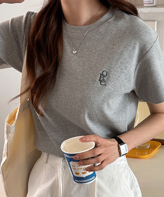 [오늘출발💕/면탄탄/국내제작] 헤븐 라운드넥 자수 심플 베이직 면 기본티 이너티 여성 반팔티 4color