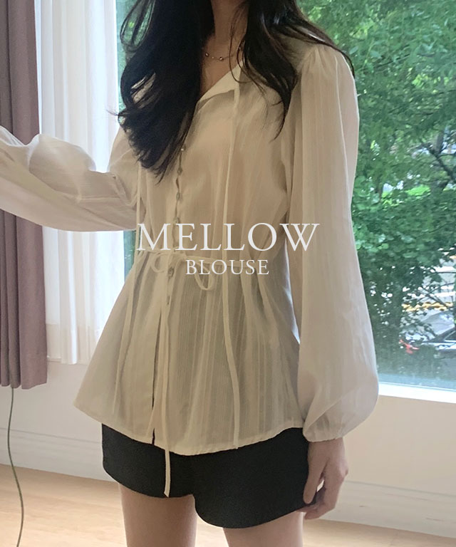 [국내제작] 멜로우 자개단추 리본 블라우스 (3color)