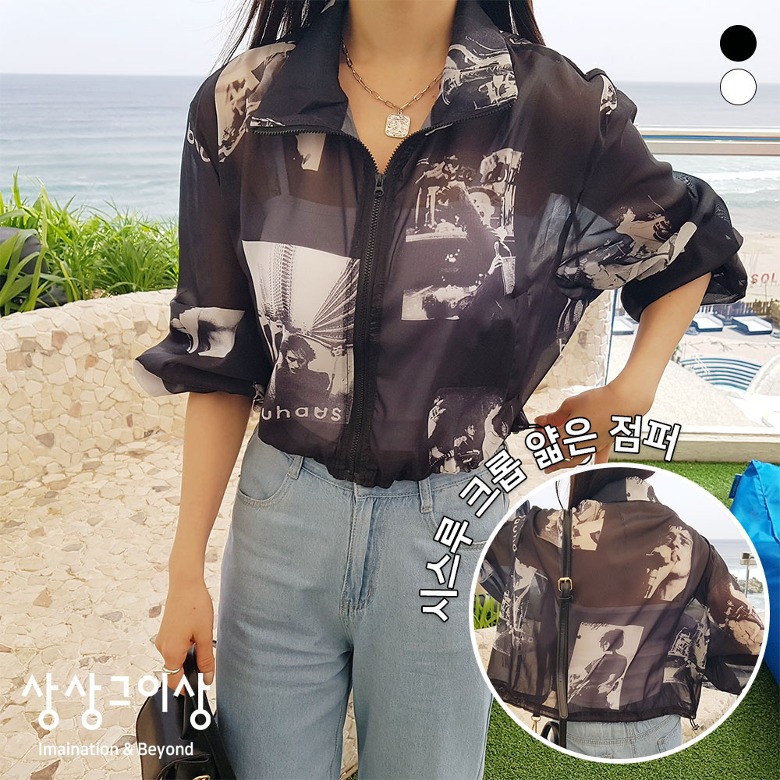디바스타[무배] 여성용 페이퍼윈드JP2328 여름 카라넥 집업 베이직핏 시스루 크롭 밑단스트링 패턴포인트