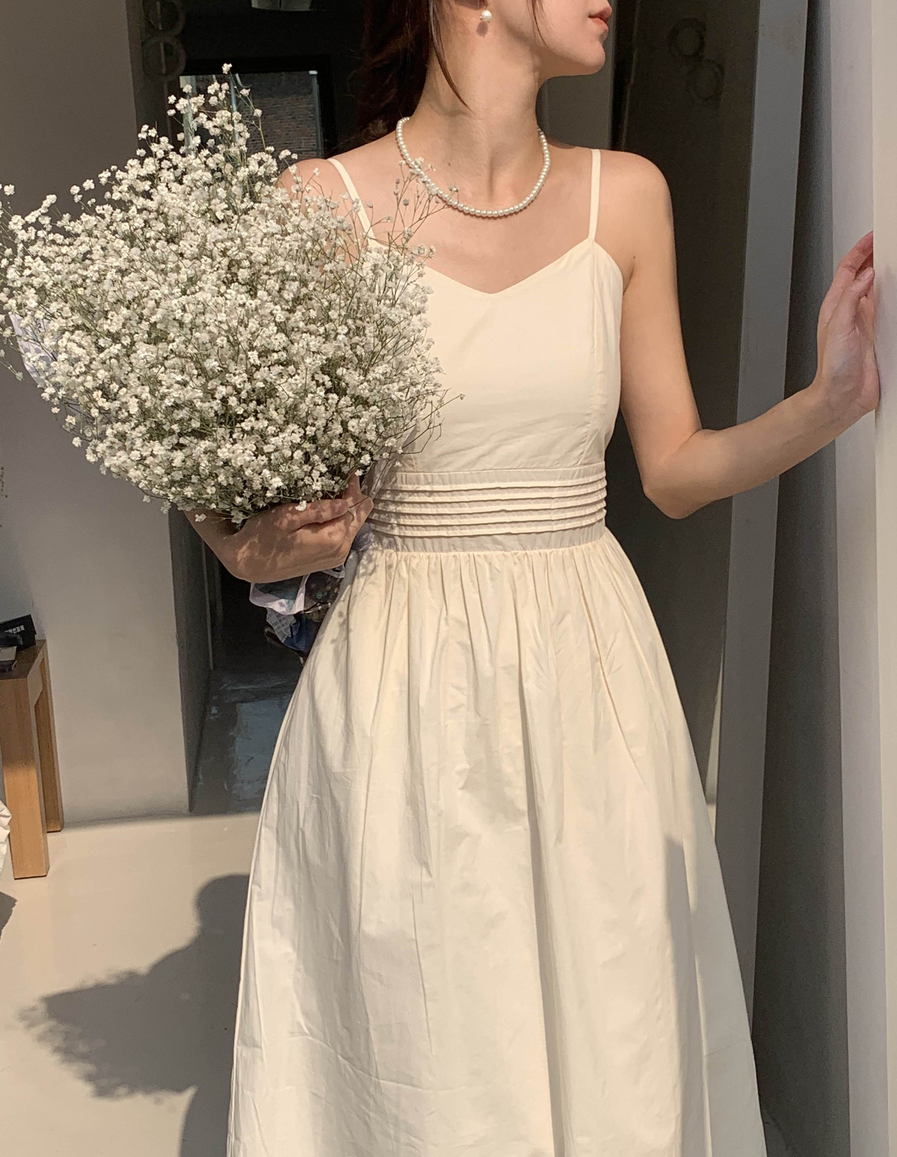 [MADE]페이지 핀턱 브이넥 뷔스티에 셔링 스모크밴딩 나시 봄 여름 가을 롱원피스