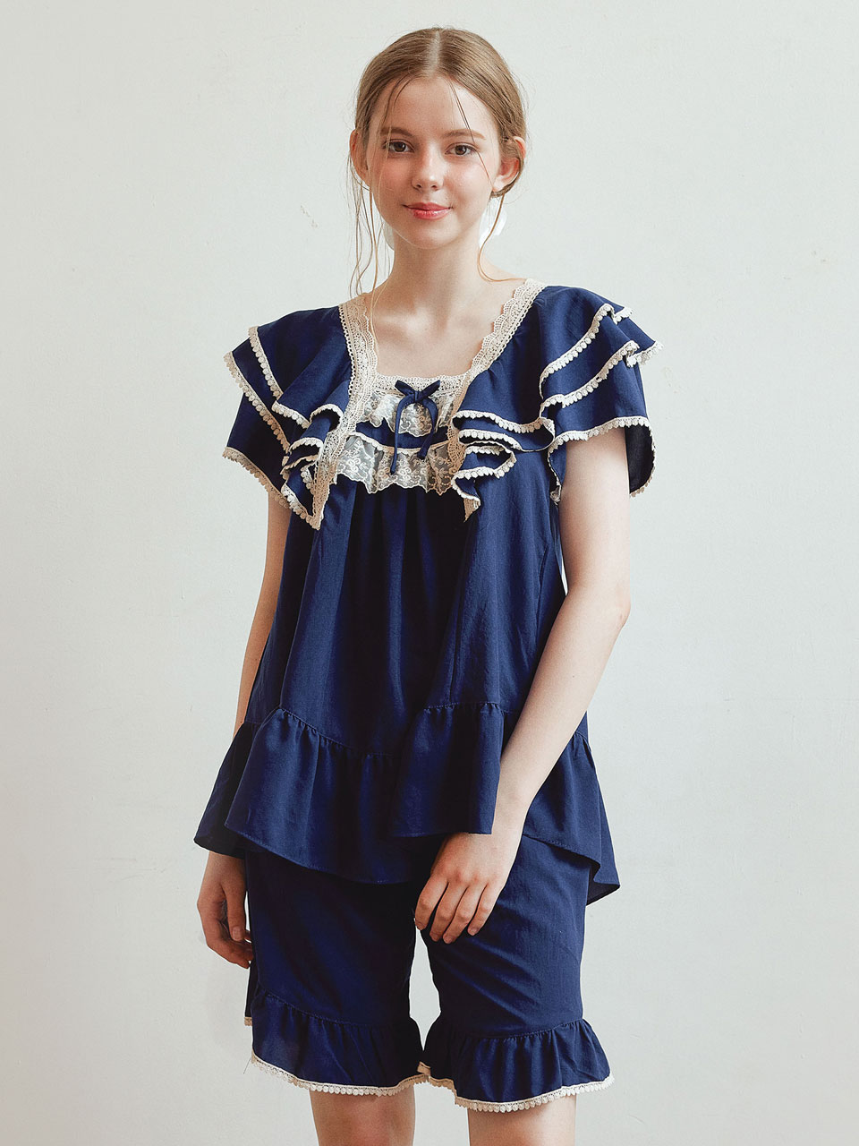 여성 하모니 샌드워싱 스퀘어넥 반소매 투피스 잠옷