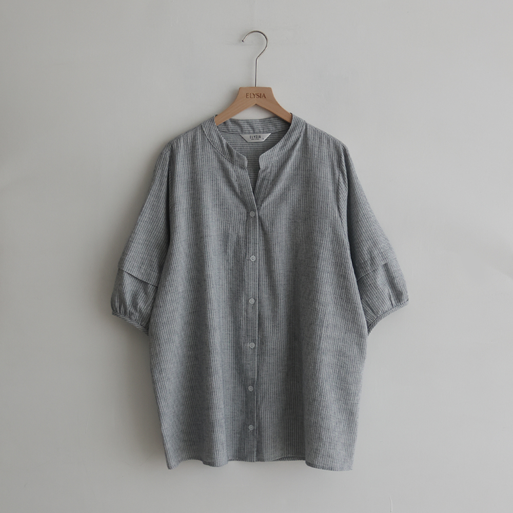 [MADE] 레나 줄지 차이넥 반팔 BL