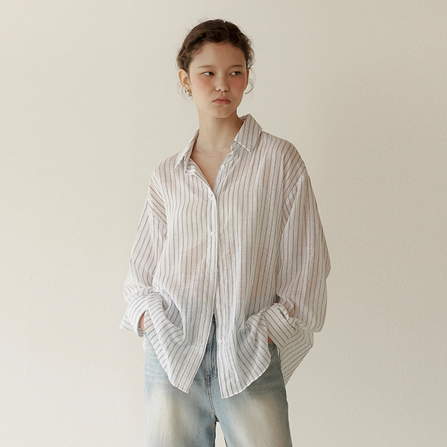 시스루 스트라이프 루즈핏 셔츠 - 아이보리