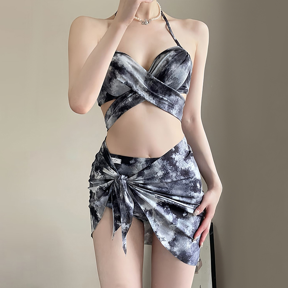 [몸매보정💙/3피스SET/비치웨어] 그레이마블 비키니 수영복 세트 3종 (랩스커트/치마/가디건/홀터넥/섹시/바캉스/커버업)