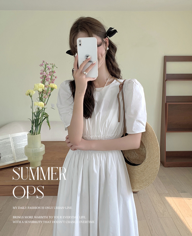 [여름하객룩추천] 파스텔 바스락 라운드넥 퍼프소매 코튼 롱 원피스 - 5color