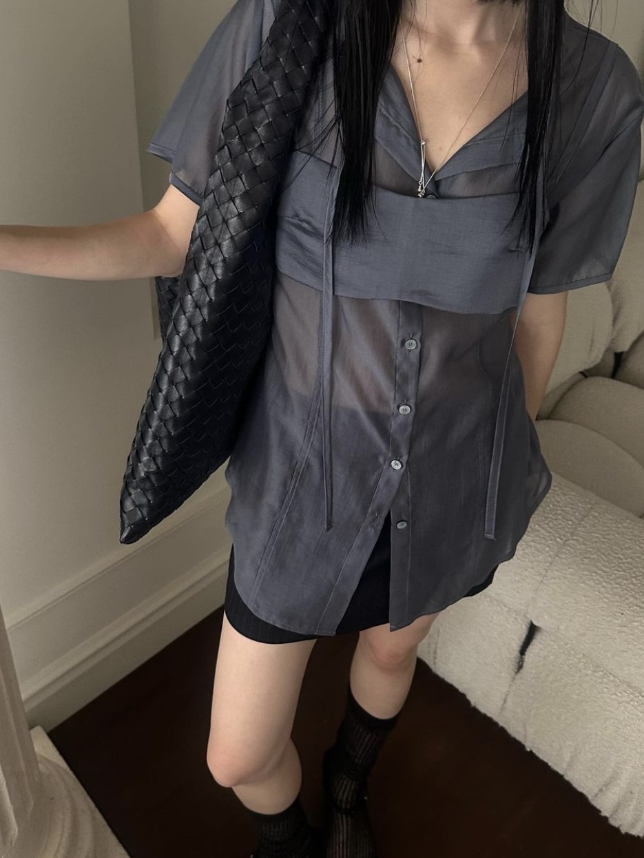 유니크 트렌디 캐시 시스루 레이어드 뷔스티에 스트랩 끈 탑 나시 (4color)