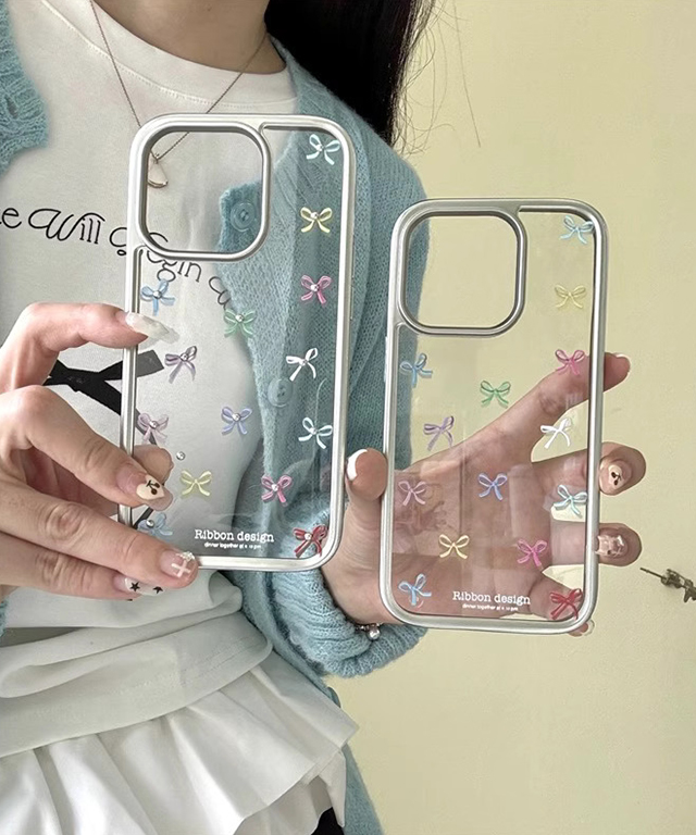 인기만점🍎컬러리본 실버프레임 아이폰케이스 12.13.14.15.16 PROMAX.프로맥스