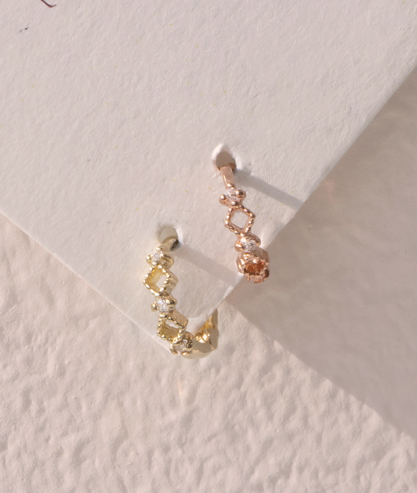 14K 피어싱 뾰족 레이스 미니 원터치링 금 귀걸이 (낱개)