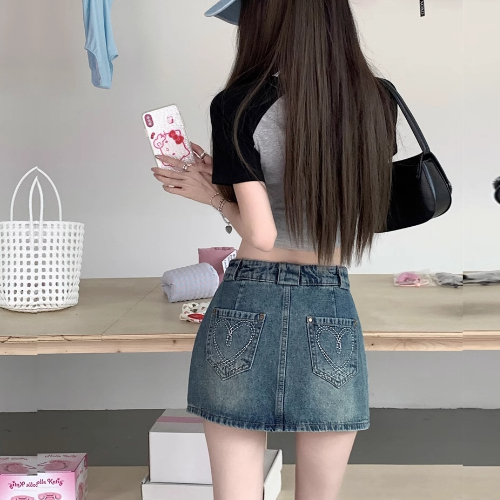 [청치마/청청코디/여름신상] 빈티지 슬림핏 a라인 숏 스커트 데님스커트 하트 스티치 흑청 워싱 청치마코디 하의 (20대 데이트룩 데일리룩 캐주얼룩 소개팅룩 여친룩) 키치 러블리