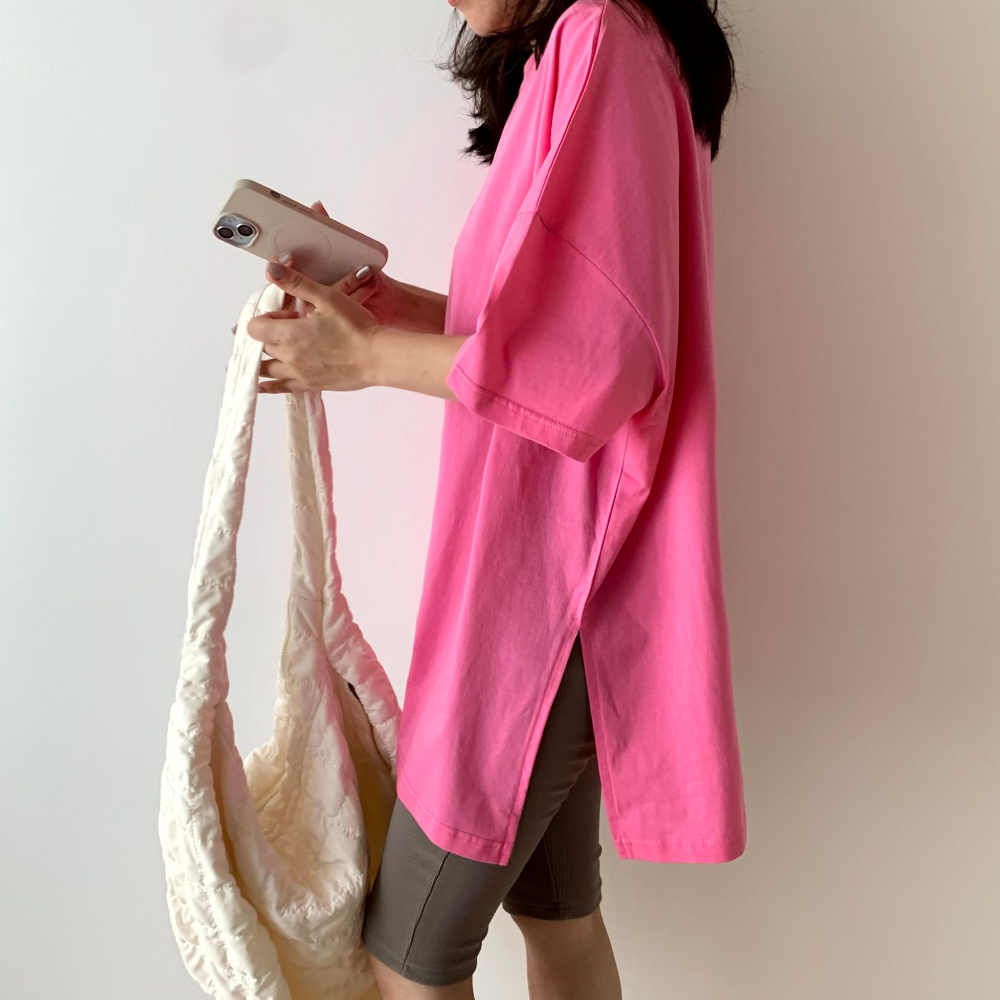 [국내제작/레깅스코디] 박스티 롱 반팔 오버핏 루즈핏 빅사이즈 옆트임 레이어드 반팔 티셔츠 레깅스코디