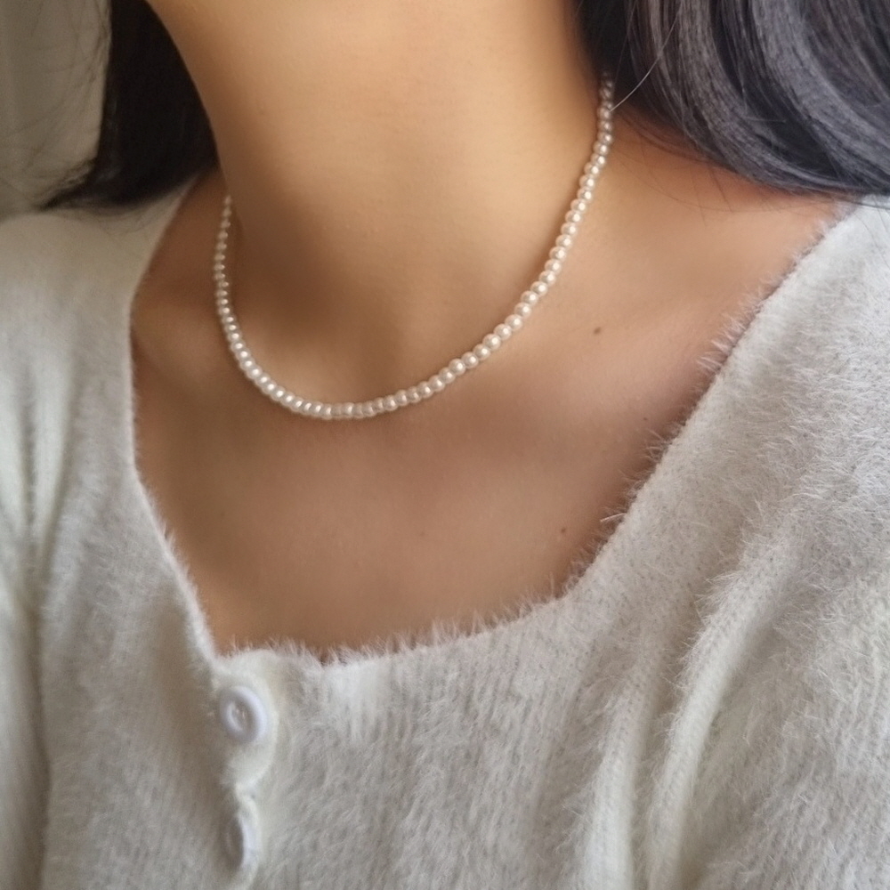레이어드 심플 4mm 아크릴 진주 목걸이 초커 하객 목걸이 진주 팔찌