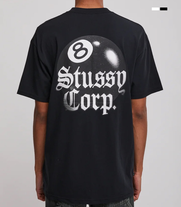 스투시 8볼 코프 라벨 반팔티 블랙 화이트