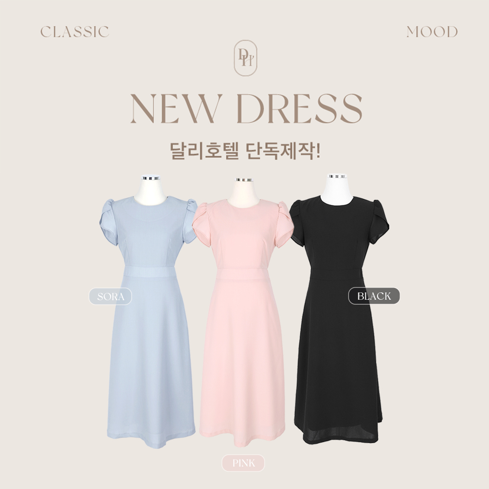 [튤립소매🌷/Dali made/S,M]헬린느 라운드 튤립 소매 쉬폰 플레어 롱 원피스(하객룩/휴양지원피스)