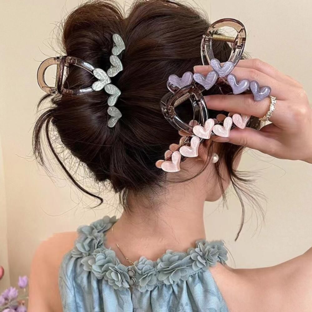하트 헤어핀 헤어 아크릴 헤어포인트 올림머리 반묶음 포인트 아크릴하트집게핀 집게핀