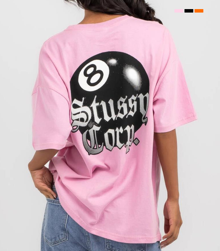 스투시 8볼 코프 릴랙스드 라벨 반팔티 핑크 블랙 코랄