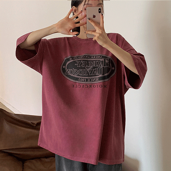 [남녀공용,오버핏,통통,고퀄리티,66-77,힙한,스트릿] 데이비슨 피그먼트 박시핏 반팔 티셔츠 - T[무료배송]