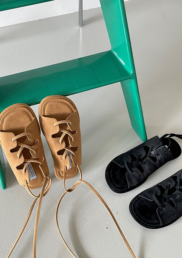 테이 스트랩 플랫 샌들 (2col) 블랙 카멜