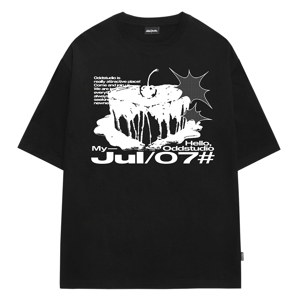 하트 벌스데이 그래픽 오버핏 티셔츠 - BLACK