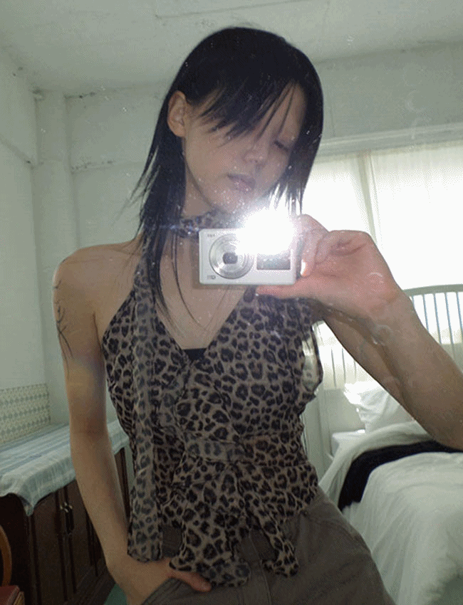 베이비 호피 버튼 프릴 머플러 타이 블라우스