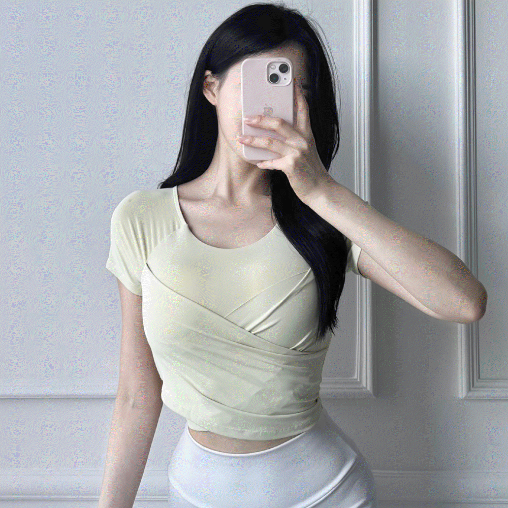 [강추💛패드내장] 크로스 플리츠 반팔티 필라테스복 크롭 요가복 헬스 운동복 필라테스커버업 운동복 필라테스상의