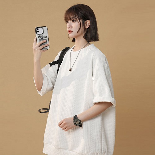 와플 꽈배기 루즈핏 라운드 반팔 맨투맨 티셔츠 MH3502 DC (세일/교환반품X) 화이트 XL