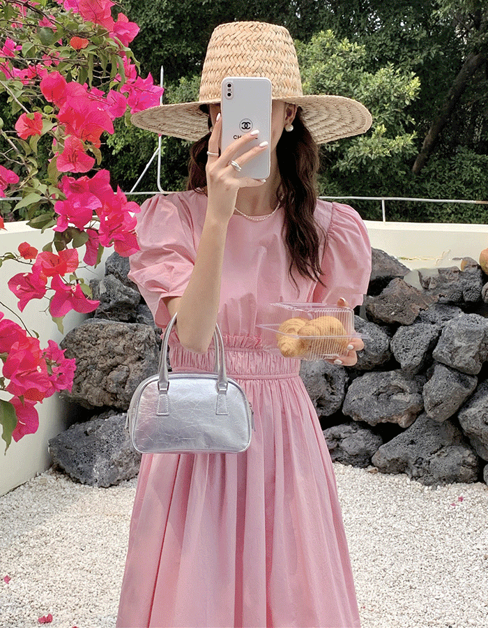 [러블리/만능코디템] 람테 스모크밴딩 퍼프 코튼 반팔 롱원피스 - 5 Color