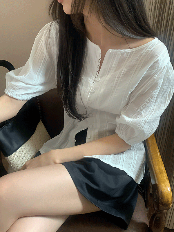 향기 레이스 뒷리본 버튼 반팔 블라우스