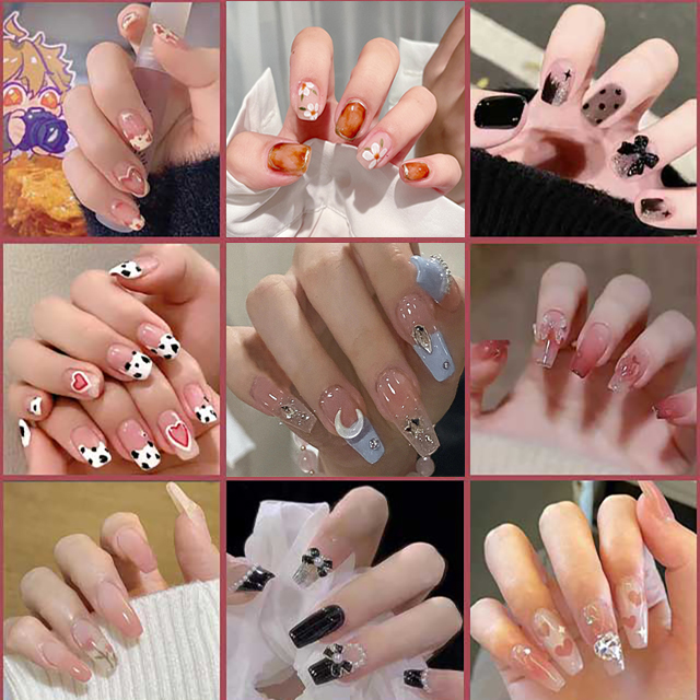 [34종/2분이면끝!] 셀프 네일팁 청순 손톱연장 수제 웨딩 네일 스티커 인조 네일팁 파츠 스톤 네일쉐입