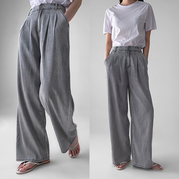 [키큰여자]노컷214#썸머밴딩핀턱와이드팬츠