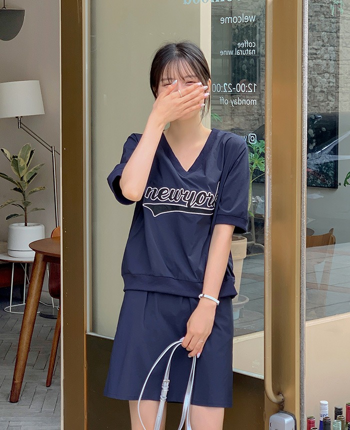 [55-100][셋업룩][밴딩]나일론 티셔츠 스커트 세트