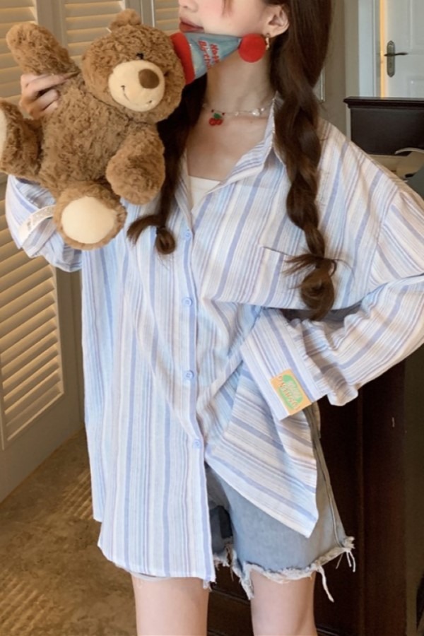 디오드 스트라이프 긴팔 루즈핏 캐주얼 셔츠