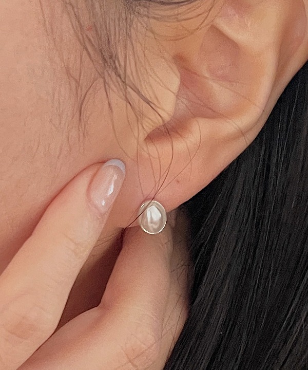 925실버 레이브 오벌 진주 클래식 미니 원터치 링귀걸이