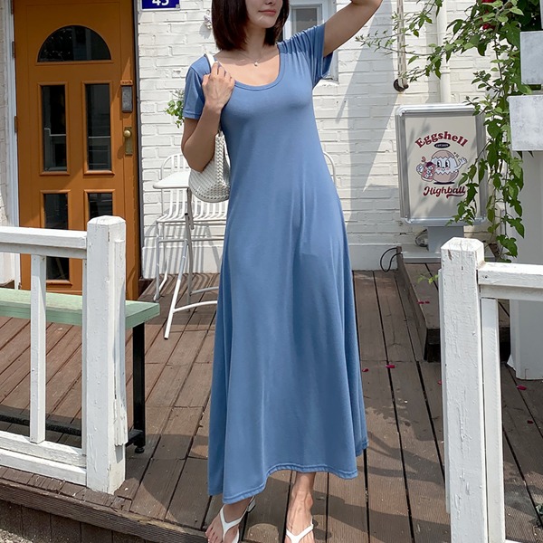 맥시롱 반팔원피스)롱원피스/반소매/미시룩/동탄룩/홈웨어/이지웨어/여름원피스/플레어/스판/쫀쫀/유넥/U넥/회색/블루/파랑/검정