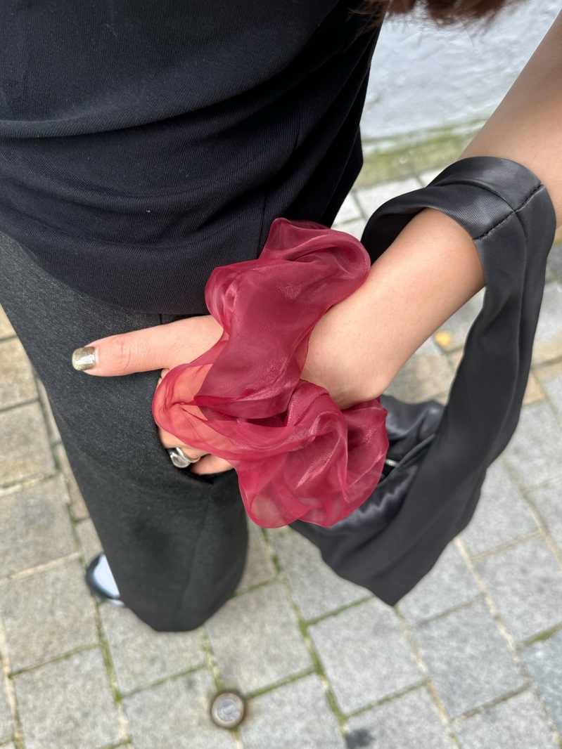 *국내생산* 레이어 샤이닝 더블 오간자 곱창 머리끈 헤어 스크런치 이중 헤어슈슈